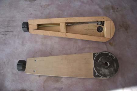 The shafts in this photo now have the flexible shaft exposed. It is actually speedometer cable. The picture above shows them covered with 1/4" plastic hose for more rigidity.