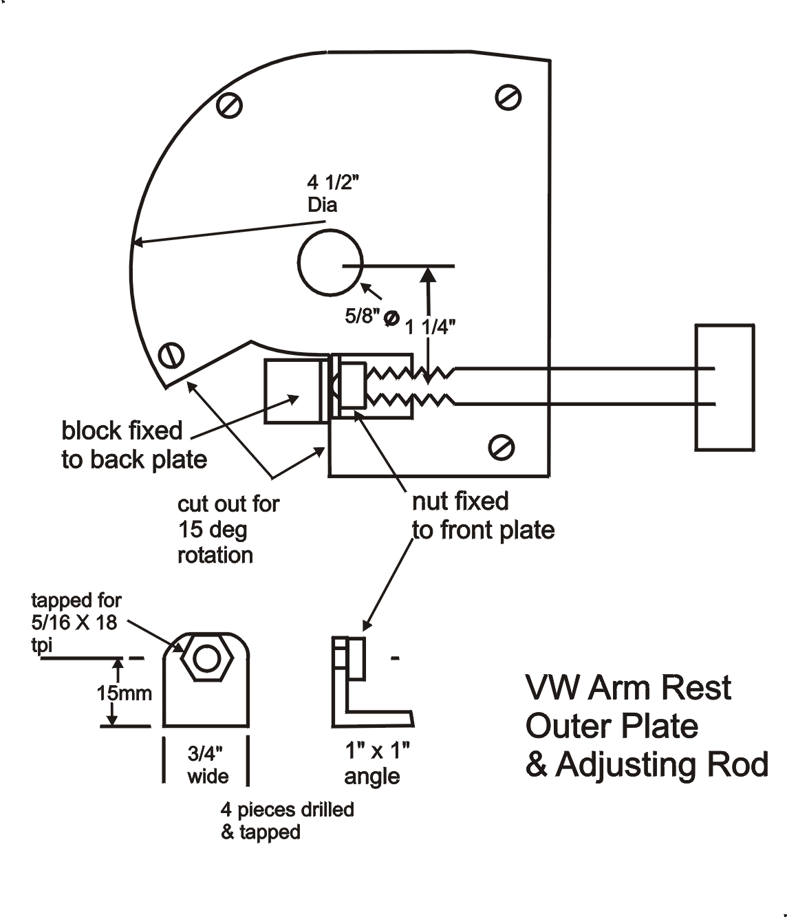 The flexible shaft was needed to align the knob in the centre of the end of the arm rest while the threaded rod is nearer the bottom. (I know VW didn't resort to such complications, and neither did my Plan A.)