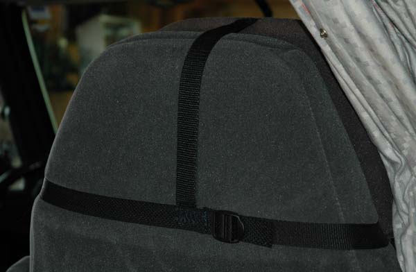 To keep the headrest cushion in place, a second strap was stitched to fit over the top of the seat back.