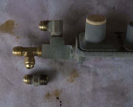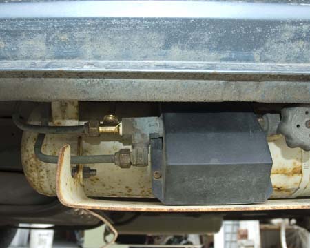 fitting a "tee" into the original propane lines and fitting an adaptor for disposable propane cans. I didn't want to cut into the original lines, nor did I want to store propane canisters in the van.