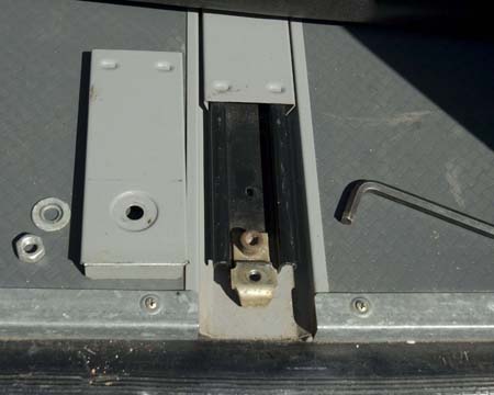 Luckily my van had floor tracks for an extra row of seats. Four of these bolts were used to hang the new tank. The short bolts were replaced with metric 10MX50mm (10mm by 2") allen head capscrews, and a washer and nut underneath the tank mounts.