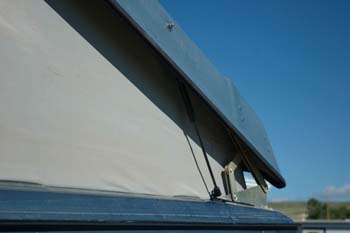 Since the top was up when the installation was finished, I was rather worried when I couldn't get it down! It seems to require quite a strong pull to get it started compressing the gas struts. Once it reaches half way, it is easier to pull down, and when nearly closed the top wants to lift up on its own again. It requires a strong pull to get the latch to lock. Lifting the top is so easy! Once the catch is released, the top lifts automatically about three quarters up. Then it requires a little pushing to get it up the last half foot and locked. |